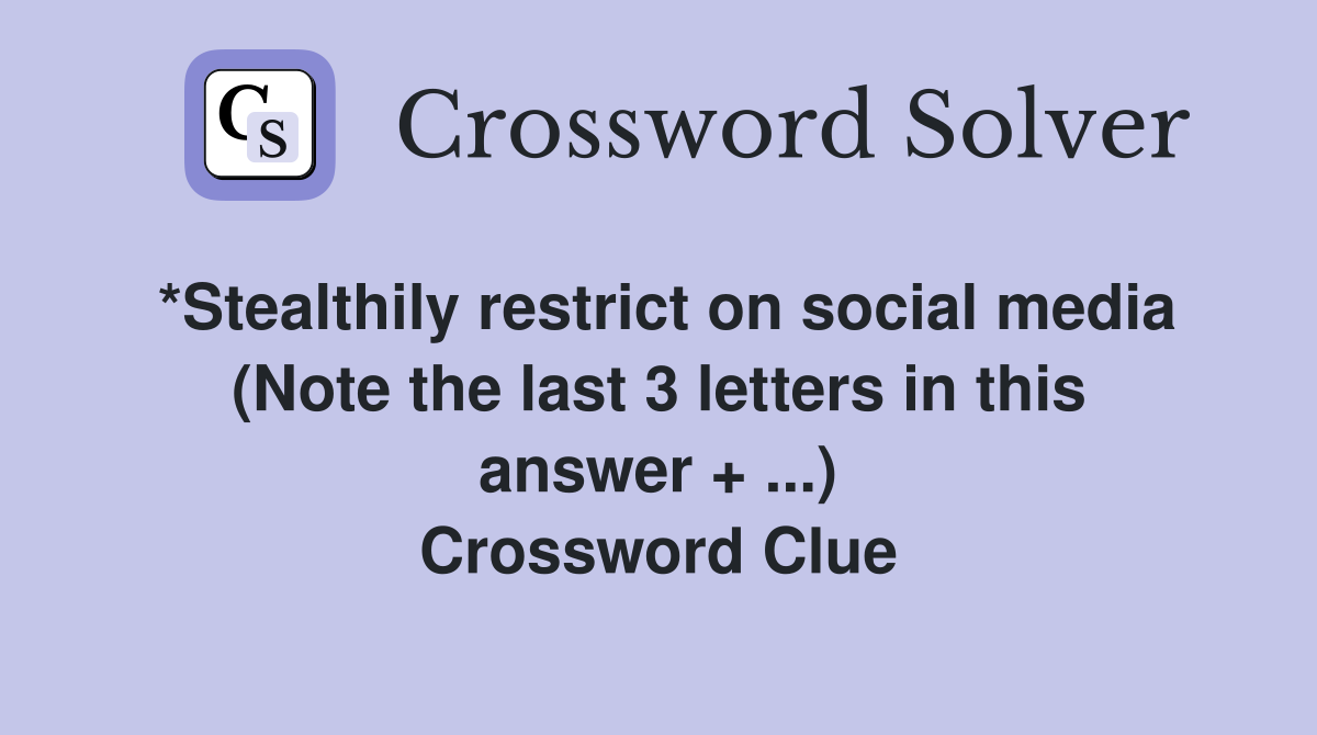 Crossword Answer For *Stealthily restrict on social media (Note the last 3 letters in this answer + ...):
