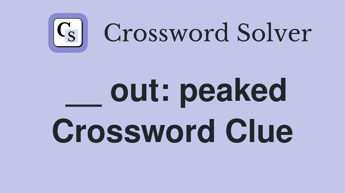 With our crossword solver search engine you have access to over 7 million clues. You can narrow down the possible answers by specifying the number of letters it contains. We found more than 40 answers for __ out: peaked.
