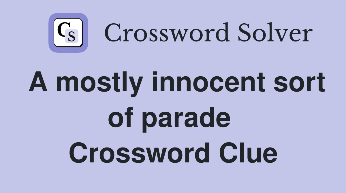 With our crossword solver search engine you have access to over 7 million clues. You can narrow down the possible answers by specifying the number of letters it contains. We found more than 40 answers for A mostly innocent sort of parade .