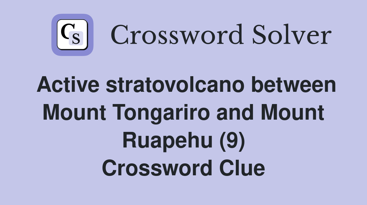 With our crossword solver search engine you have access to over 7 million clues. You can narrow down the possible answers by specifying the number of letters it contains. We found more than 40 answers for Active stratovolcano between Mount Tongariro and Mount Ruapehu (9).