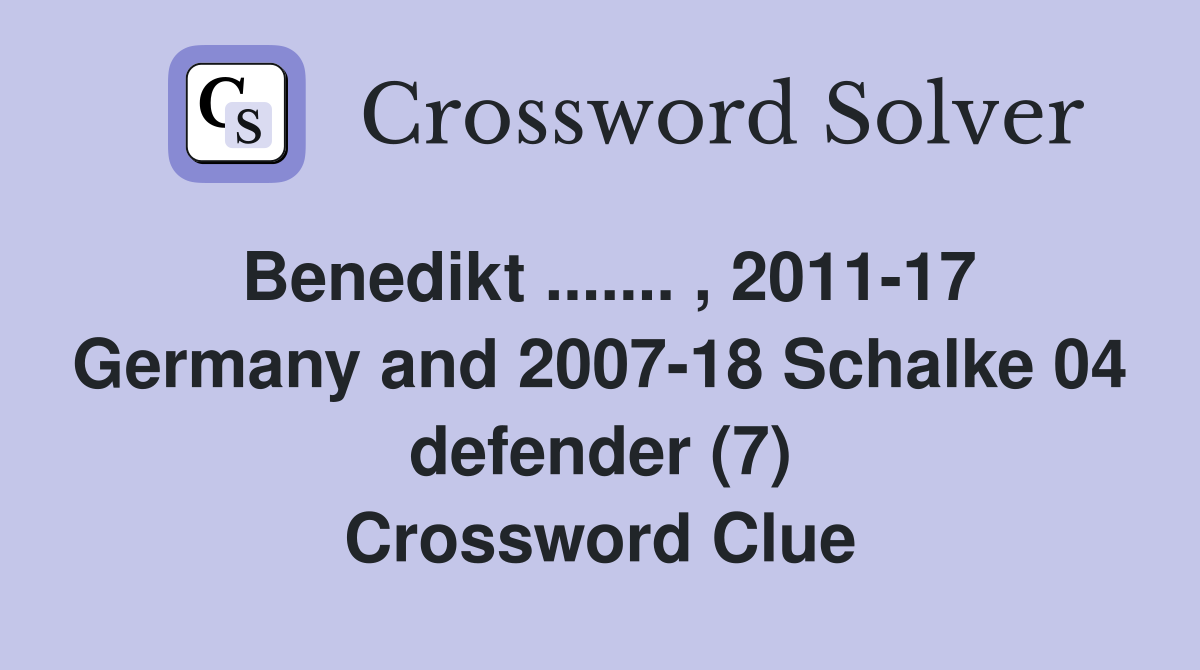 With our crossword solver search engine you have access to over 7 million clues. You can narrow down the possible answers by specifying the number of letters it contains. We found more than 40 answers for Benedikt ....... , 2011-17 Germany and 2007-18 Schalke 04 defender (7).