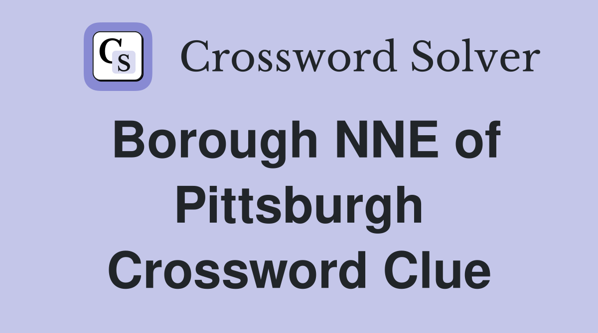 With our crossword solver search engine you have access to over 7 million clues. You can narrow down the possible answers by specifying the number of letters it contains. We found more than 40 answers for Borough NNE of Pittsburgh.