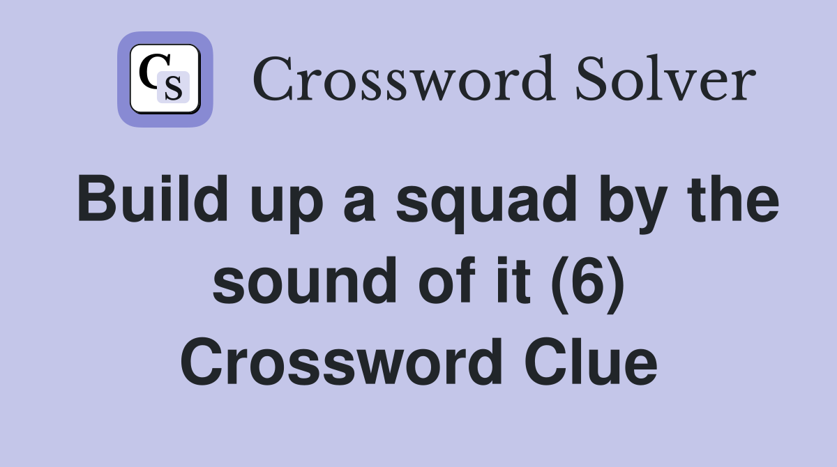 With our crossword solver search engine you have access to over 7 million clues. You can narrow down the possible answers by specifying the number of letters it contains. We found more than 40 answers for Build up a squad by the sound of it (6).