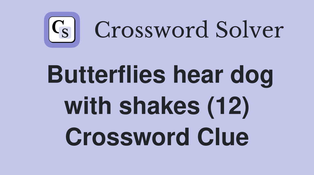 With our crossword solver search engine you have access to over 7 million clues. You can narrow down the possible answers by specifying the number of letters it contains. We found more than 40 answers for Butterflies hear dog with shakes (12).