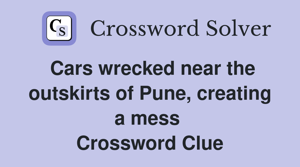 With our crossword solver search engine you have access to over 7 million clues. You can narrow down the possible answers by specifying the number of letters it contains. We found more than 40 answers for Cars wrecked near the outskirts of Pune, creating a mess .