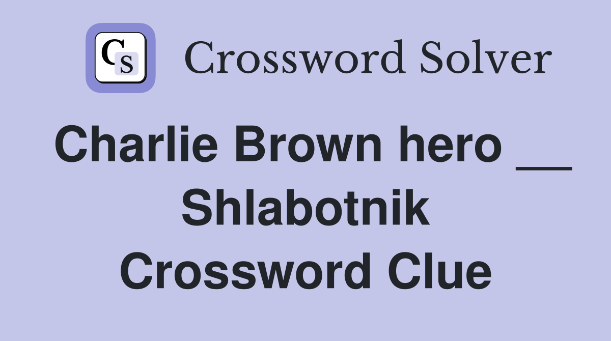 With our crossword solver search engine you have access to over 7 million clues. You can narrow down the possible answers by specifying the number of letters it contains. We found more than 40 answers for Charlie Brown hero __ Shlabotnik.