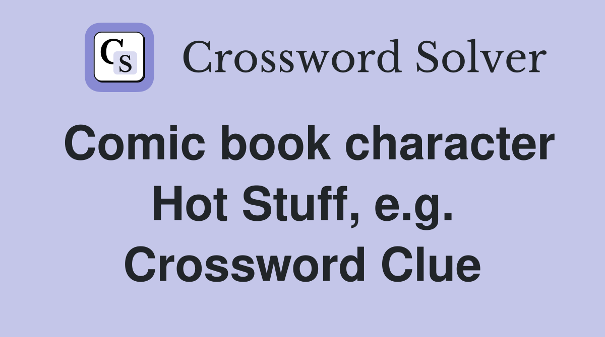 With our crossword solver search engine you have access to over 7 million clues. You can narrow down the possible answers by specifying the number of letters it contains. We found more than 40 answers for Comic book character Hot Stuff, e.g..