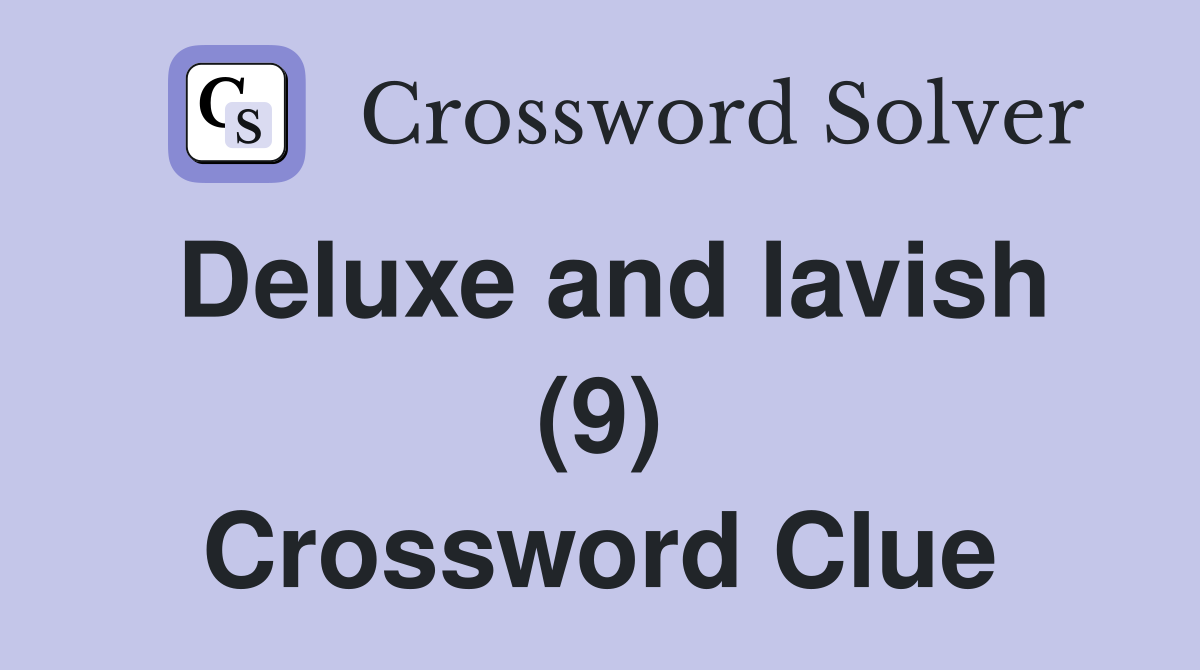 With our crossword solver search engine you have access to over 7 million clues. You can narrow down the possible answers by specifying the number of letters it contains. We found more than 40 answers for Deluxe and lavish (9).