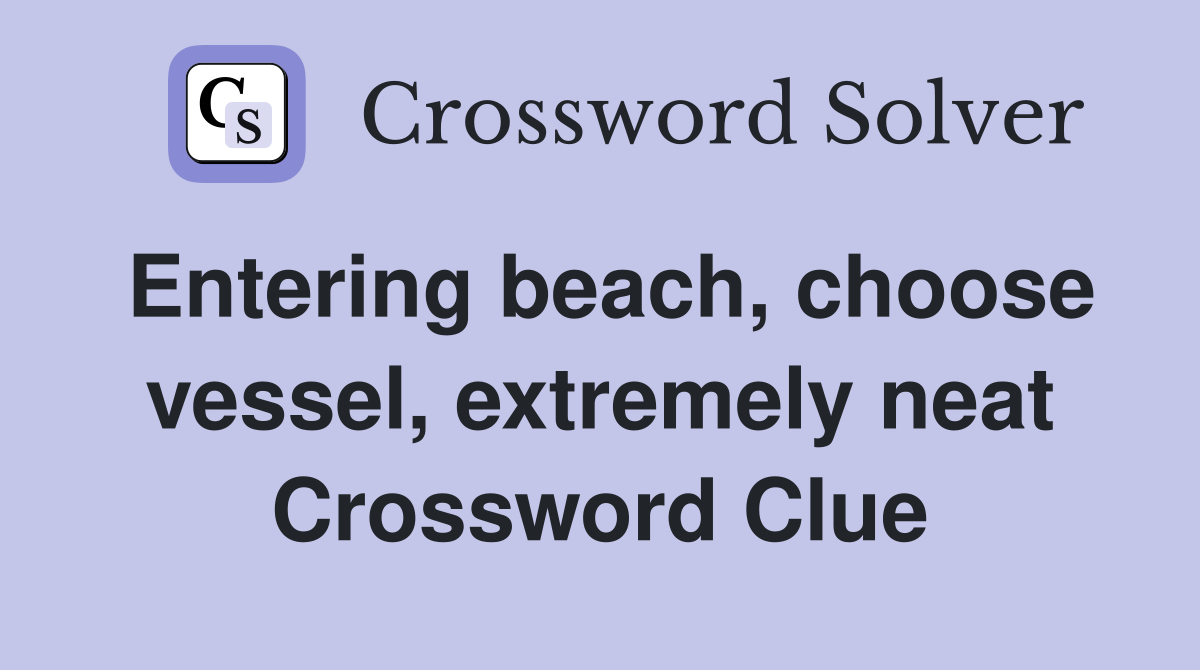 With our crossword solver search engine you have access to over 7 million clues. You can narrow down the possible answers by specifying the number of letters it contains. We found more than 40 answers for Entering beach, choose vessel, extremely neat.