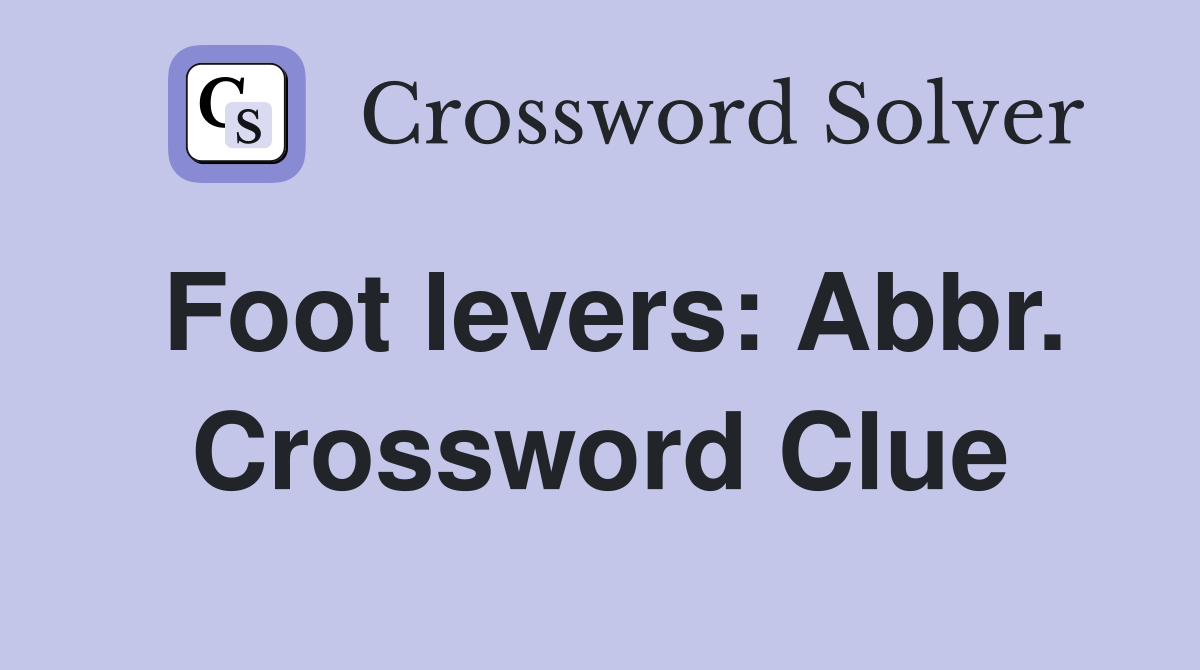 With our crossword solver search engine you have access to over 7 million clues. You can narrow down the possible answers by specifying the number of letters it contains. We found more than 40 answers for Foot levers: Abbr..