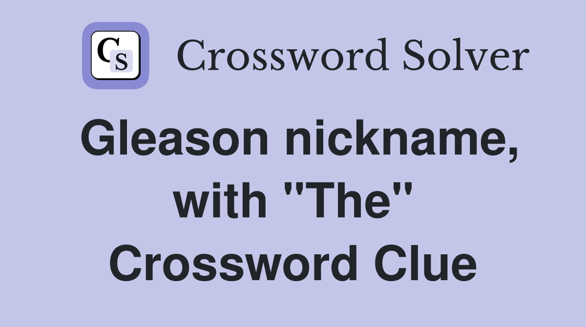 With our crossword solver search engine you have access to over 7 million clues. You can narrow down the possible answers by specifying the number of letters it contains. We found more than 40 answers for Gleason nickname, with "The".