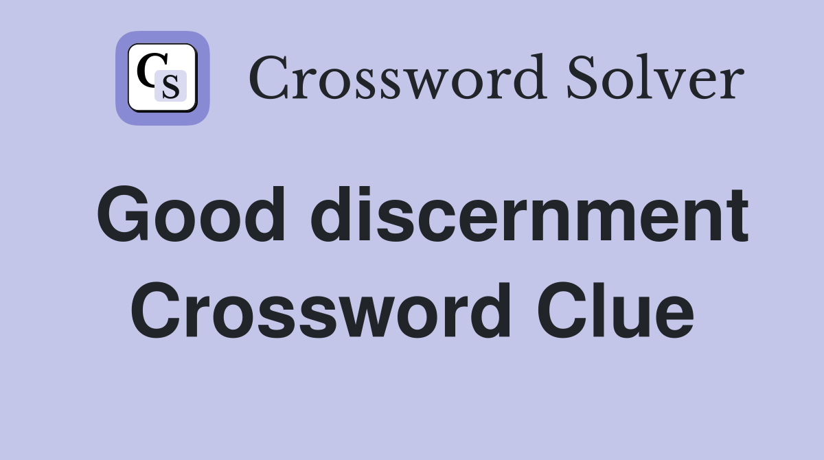 With our crossword solver search engine you have access to over 7 million clues. You can narrow down the possible answers by specifying the number of letters it contains. We found more than 40 answers for Good discernment.