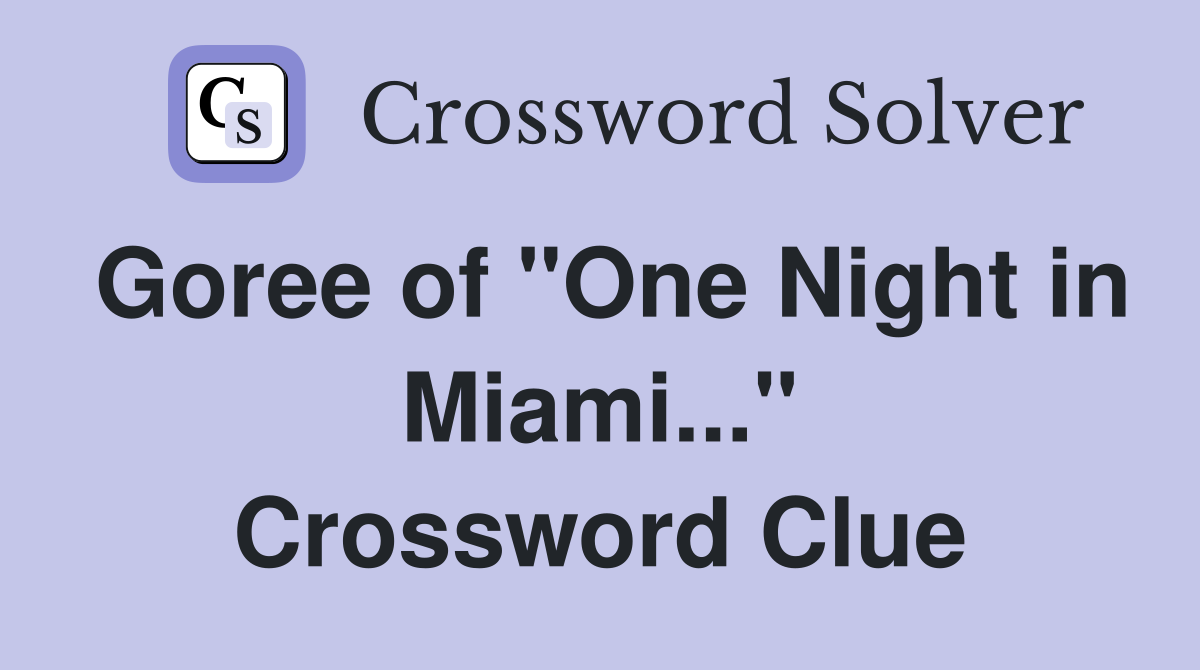 With our crossword solver search engine you have access to over 7 million clues. You can narrow down the possible answers by specifying the number of letters it contains. We found more than 40 answers for Goree of "One Night in Miami...".