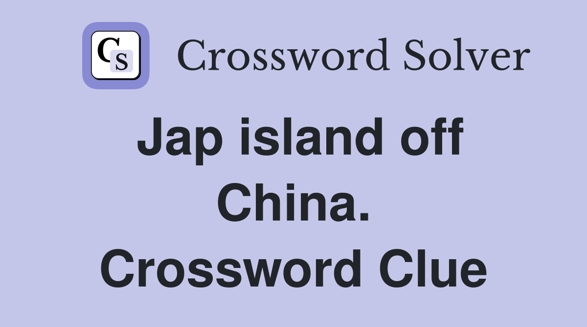 With our crossword solver search engine you have access to over 7 million clues. You can narrow down the possible answers by specifying the number of letters it contains. We found more than 40 answers for Jap island off China..