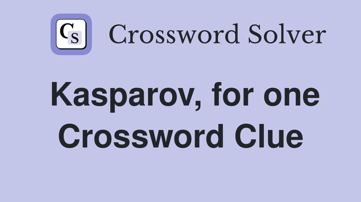 With our crossword solver search engine you have access to over 7 million clues. You can narrow down the possible answers by specifying the number of letters it contains. We found more than 40 answers for Kasparov, for one.