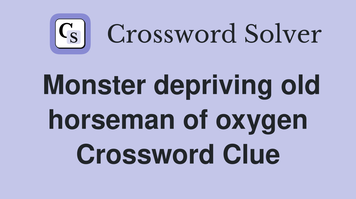 With our crossword solver search engine you have access to over 7 million clues. You can narrow down the possible answers by specifying the number of letters it contains. We found more than 40 answers for Monster depriving old horseman of oxygen.