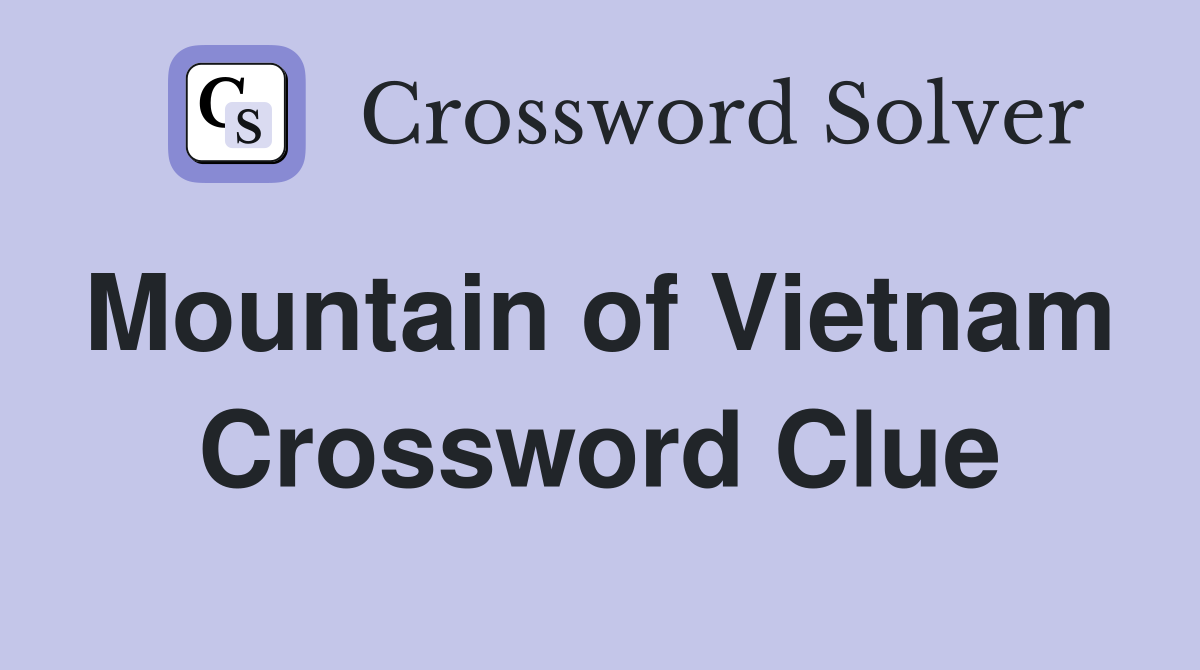 With our crossword solver search engine you have access to over 7 million clues. You can narrow down the possible answers by specifying the number of letters it contains. We found more than 40 answers for Mountain of Vietnam .