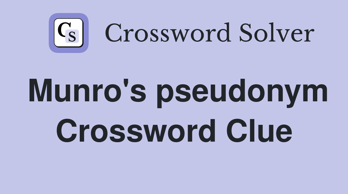 With our crossword solver search engine you have access to over 7 million clues. You can narrow down the possible answers by specifying the number of letters it contains. We found more than 40 answers for Munro's pseudonym.