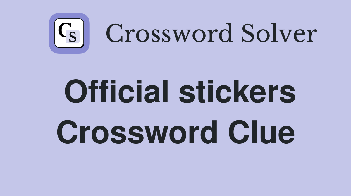 With our crossword solver search engine you have access to over 7 million clues. You can narrow down the possible answers by specifying the number of letters it contains. We found more than 40 answers for Official stickers.