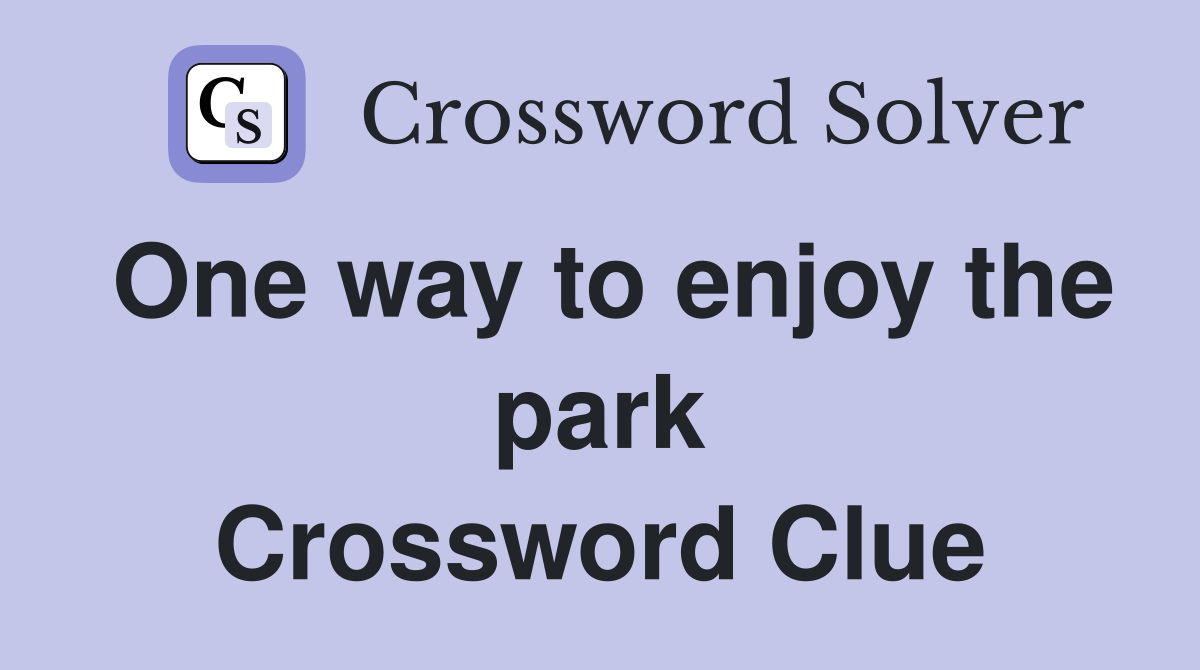With our crossword solver search engine you have access to over 7 million clues. You can narrow down the possible answers by specifying the number of letters it contains. We found more than 40 answers for One way to enjoy the park.