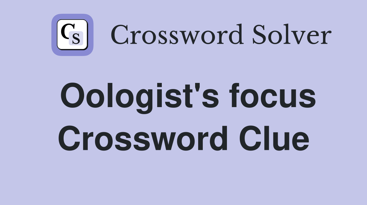 With our crossword solver search engine you have access to over 7 million clues. You can narrow down the possible answers by specifying the number of letters it contains. We found more than 40 answers for Oologist's focus.