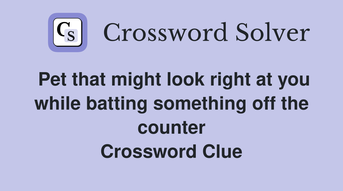 With our crossword solver search engine you have access to over 7 million clues. You can narrow down the possible answers by specifying the number of letters it contains. We found more than 40 answers for Pet that might look right at you while batting something off the counter.