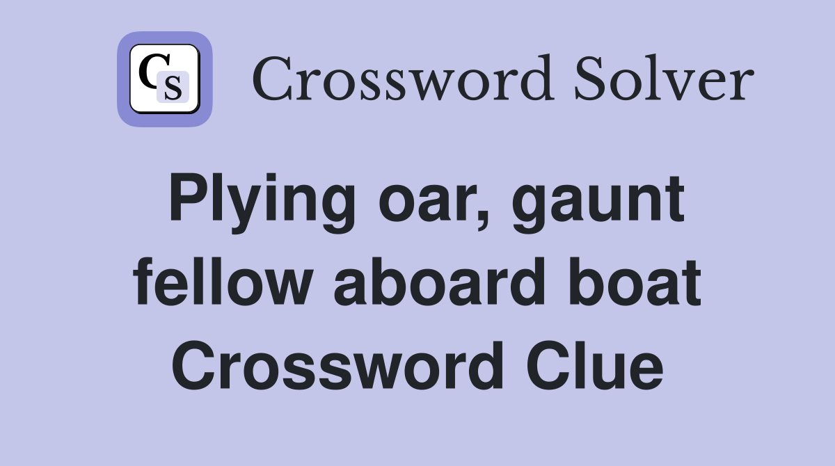 With our crossword solver search engine you have access to over 7 million clues. You can narrow down the possible answers by specifying the number of letters it contains. We found more than 40 answers for Plying oar, gaunt fellow aboard boat.