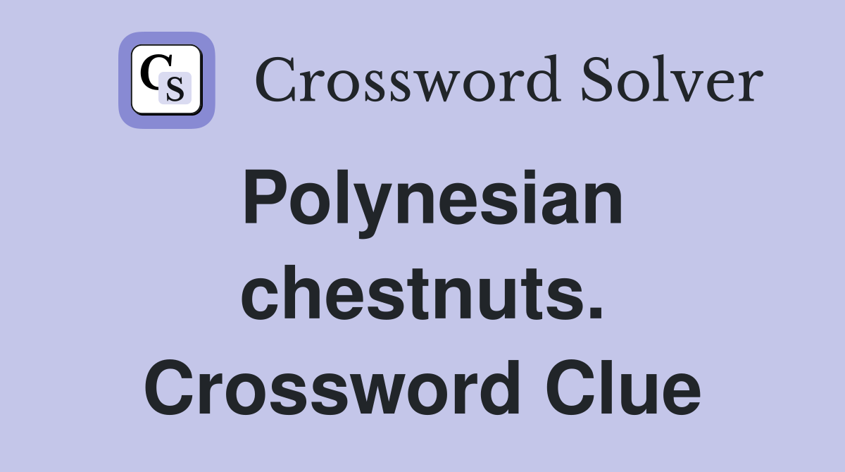 With our crossword solver search engine you have access to over 7 million clues. You can narrow down the possible answers by specifying the number of letters it contains. We found more than 40 answers for Polynesian chestnuts.