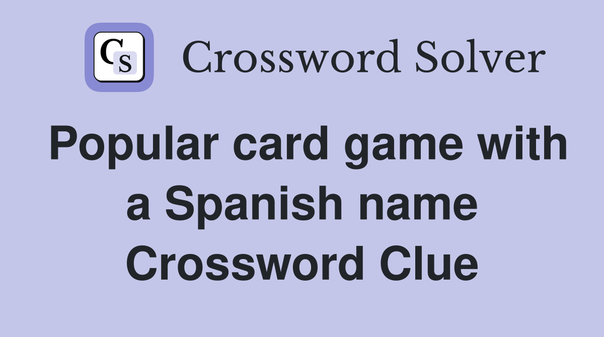 With our crossword solver search engine you have access to over 7 million clues. You can narrow down the possible answers by specifying the number of letters it contains. We found more than 40 answers for Popular card game with a Spanish name.