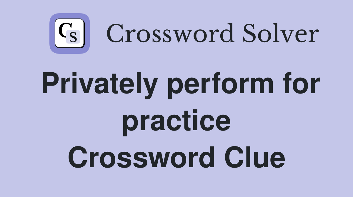 With our crossword solver search engine you have access to over 7 million clues. You can narrow down the possible answers by specifying the number of letters it contains. We found more than 40 answers for Privately perform for practice.