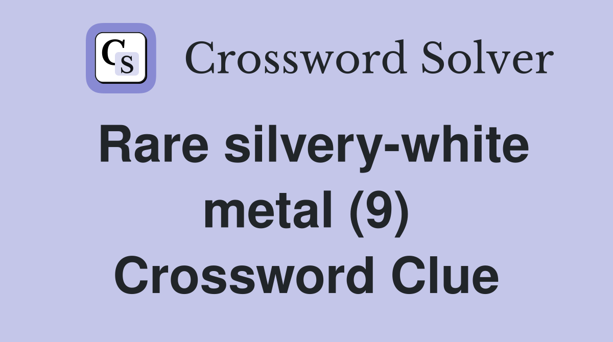 With our crossword solver search engine you have access to over 7 million clues. You can narrow down the possible answers by specifying the number of letters it contains. We found more than 40 answers for Rare silvery-white metal (9).