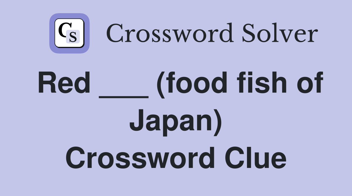 With our crossword solver search engine you have access to over 7 million clues. You can narrow down the possible answers by specifying the number of letters it contains. We found more than 40 answers for Red ___ (food fish of Japan).