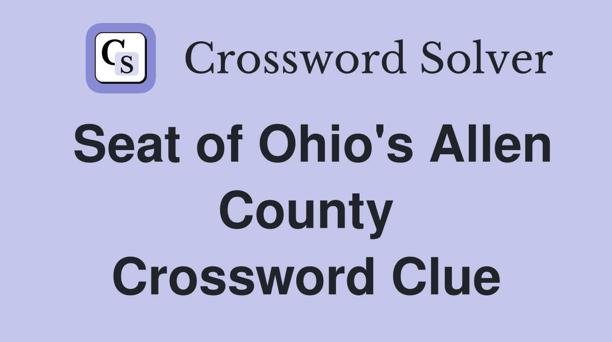 With our crossword solver search engine you have access to over 7 million clues. You can narrow down the possible answers by specifying the number of letters it contains. We found more than 40 answers for Seat of Ohio's Allen County.