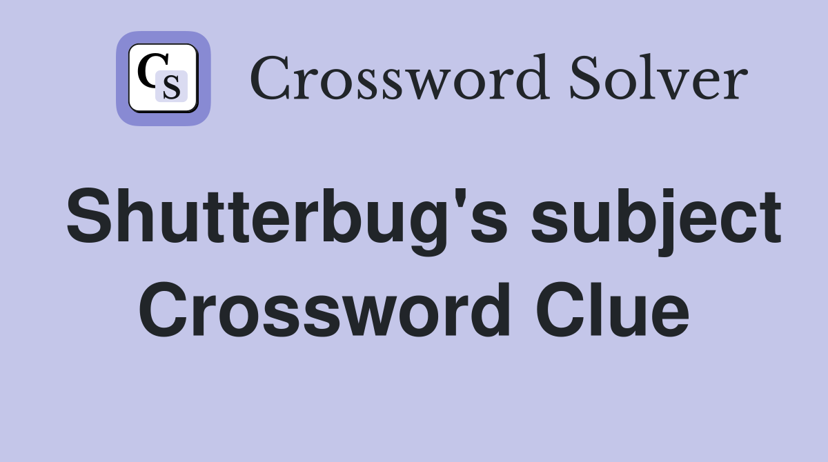 With our crossword solver search engine you have access to over 7 million clues. You can narrow down the possible answers by specifying the number of letters it contains. We found more than 40 answers for Shutterbug's subject.