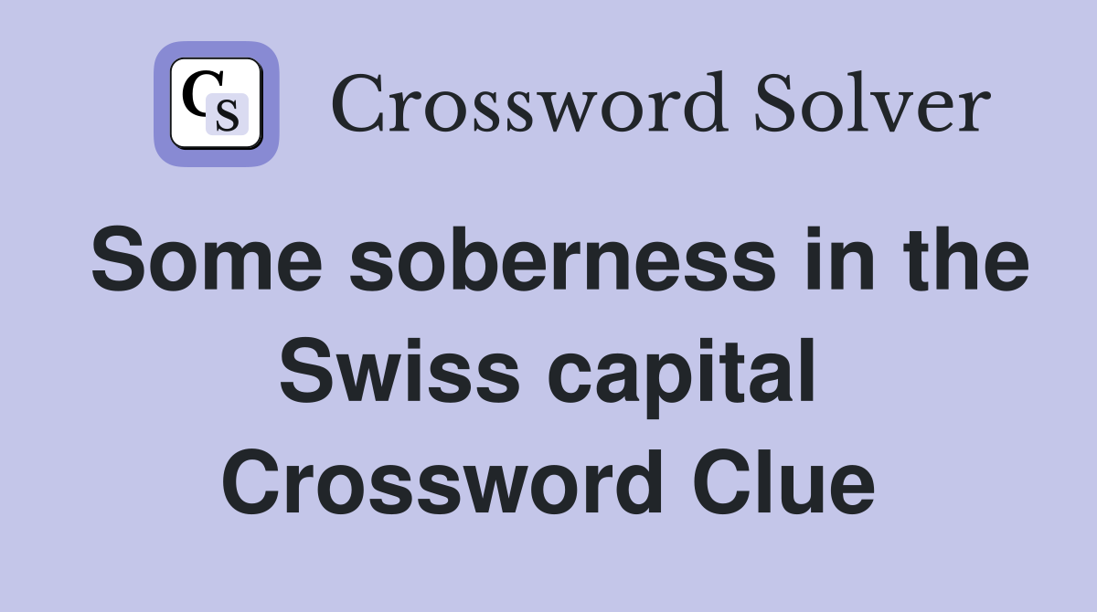 With our crossword solver search engine you have access to over 7 million clues. You can narrow down the possible answers by specifying the number of letters it contains. We found more than 40 answers for Some soberness in the Swiss capital.