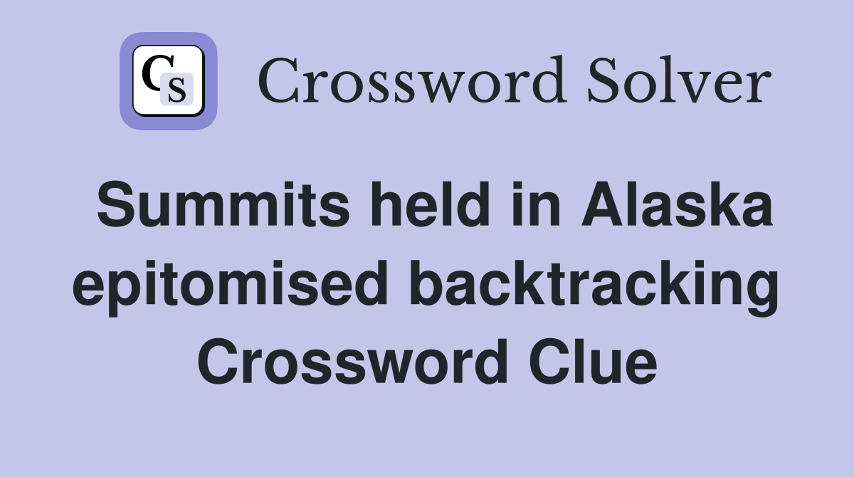 With our crossword solver search engine you have access to over 7 million clues. You can narrow down the possible answers by specifying the number of letters it contains. We found more than 40 answers for Summits held in Alaska epitomised backtracking.