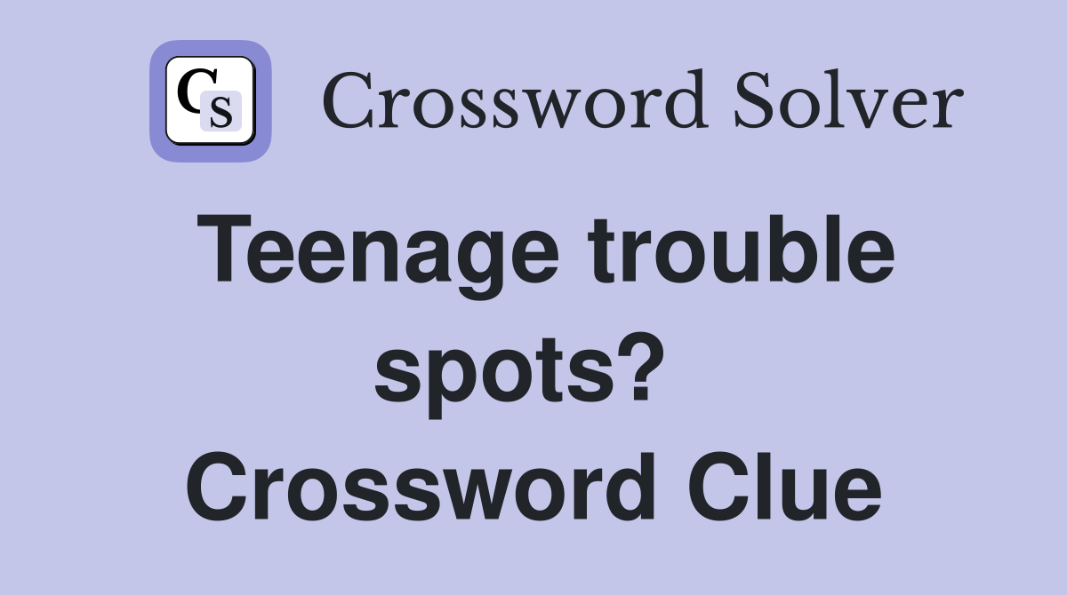 With our crossword solver search engine you have access to over 7 million clues. You can narrow down the possible answers by specifying the number of letters it contains. We found more than 40 answers for Teenage trouble spots? .