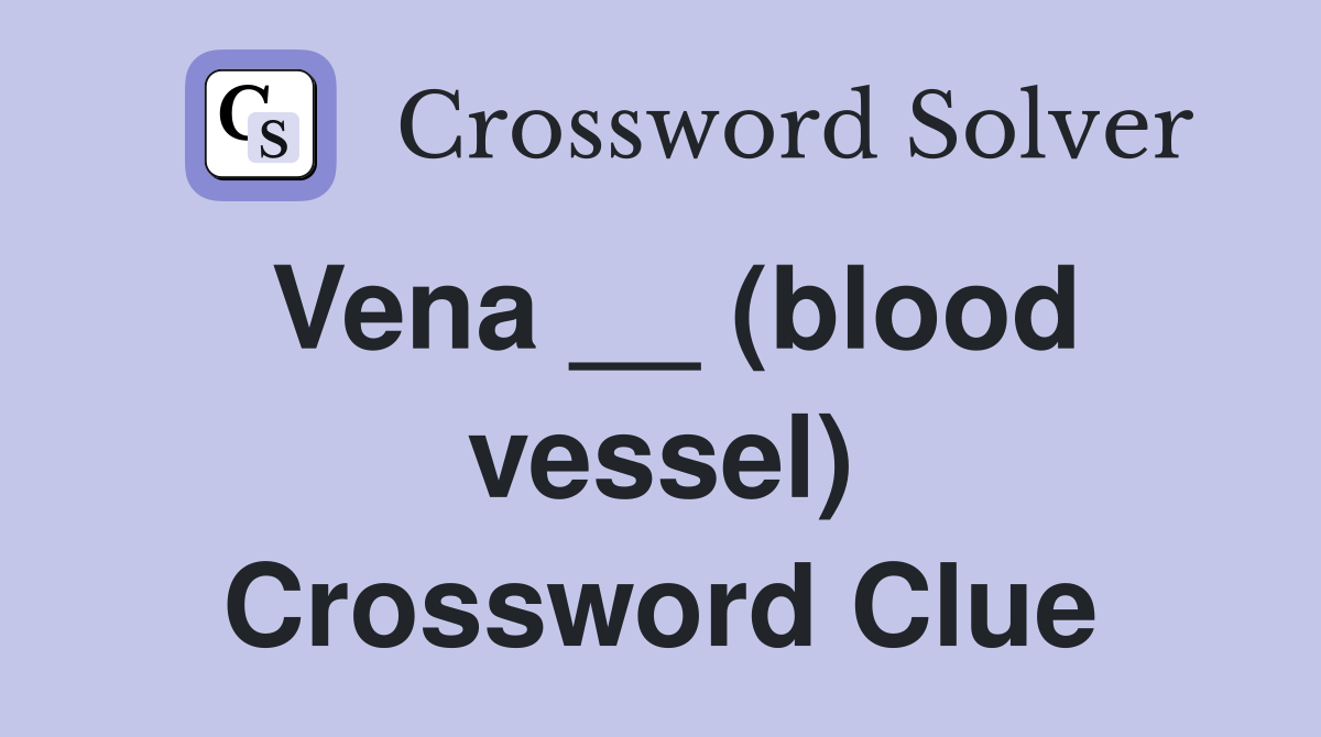 With our crossword solver search engine you have access to over 7 million clues. You can narrow down the possible answers by specifying the number of letters it contains. We found more than 40 answers for Vena __ (blood vessel).