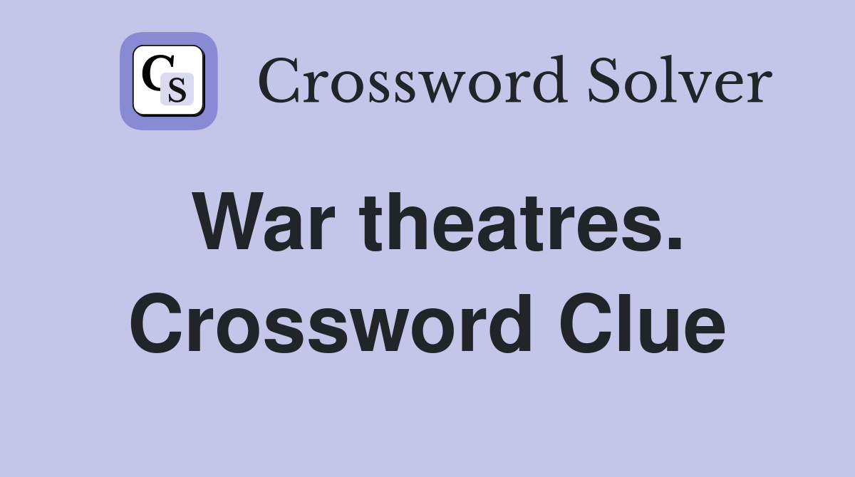 With our crossword solver search engine you have access to over 7 million clues. You can narrow down the possible answers by specifying the number of letters it contains. We found more than 40 answers for War theatres..