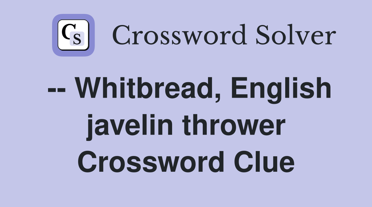 With our crossword solver search engine you have access to over 7 million clues. You can narrow down the possible answers by specifying the number of letters it contains. We found more than 40 answers for -- Whitbread, English javelin thrower.