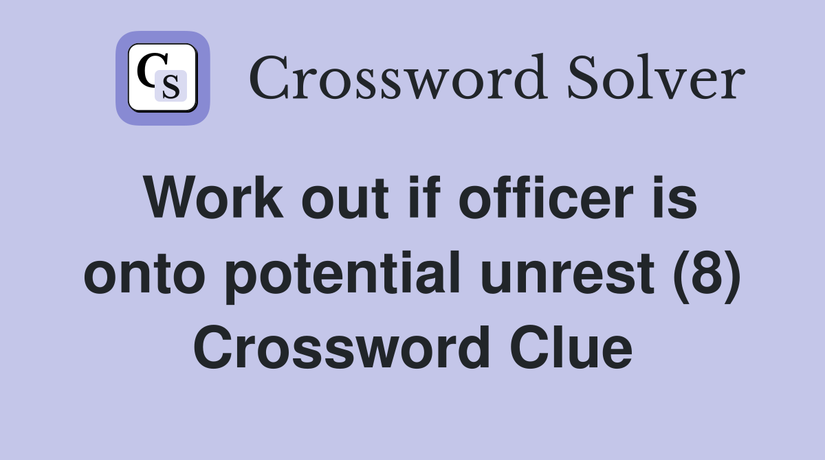 Work out if officer is onto potential unrest (8) Crossword Clue