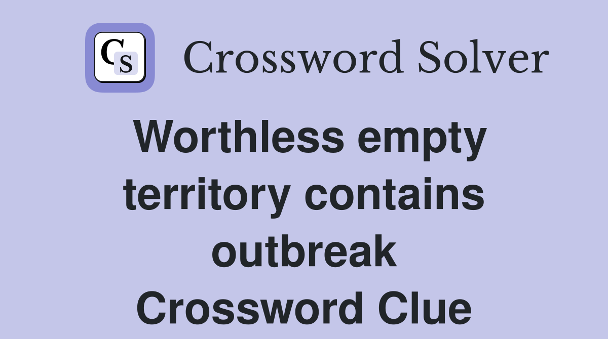 With our crossword solver search engine you have access to over 7 million clues. You can narrow down the possible answers by specifying the number of letters it contains. We found more than 40 answers for Worthless empty territory contains outbreak.