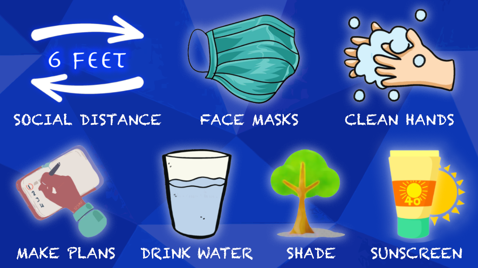 To be added to the usual list is a face mask, hand sanitizer, and even some handy disinfecting wipes. While going for a bike ride or walking outdoors is one of the safest activities for people of all ages - masks not required - mingling with others still poses a risk. Meeting unvaccinated people outside is better dealt with while wearing a mask when possible. Currently (June 2021), none of the vaccines ok'd for use in the U.S., and most other countries, have been given the go-ahead to administer to those under 12.